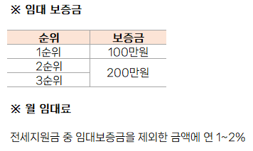 1순위 : 기초생활 수급자 가구, 보호대상 한부모가족 가구, 차상위계층 가구의 청년, 보호종료아동, 청소년 쉼터 퇴소청소년