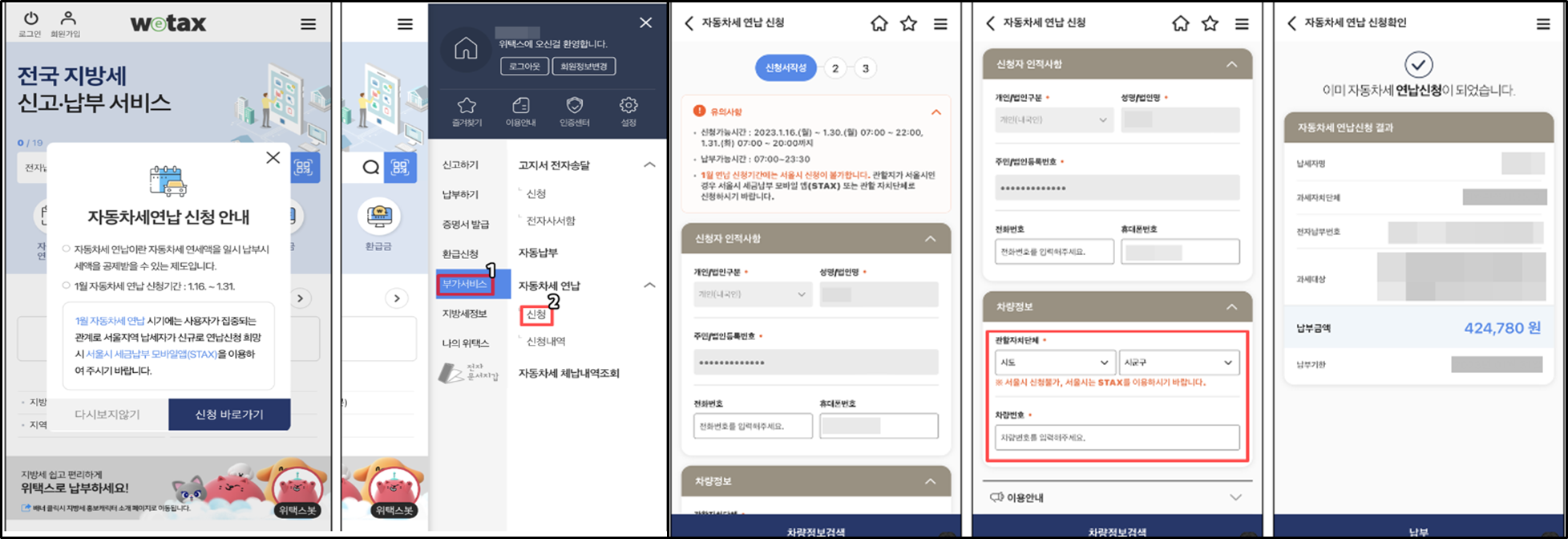 Wetax 위택스 자동차세 연납신청 전용 서비스 간소화페이지