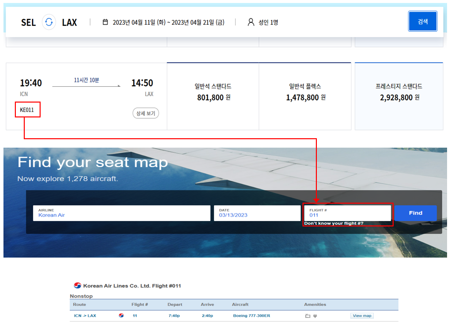 "대한항공 / 3월13일 / KE011"를