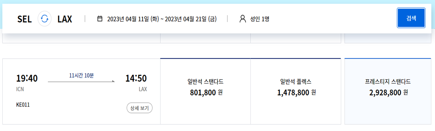 LA로 가는 대한항공 비행기를 알아볼건데요!