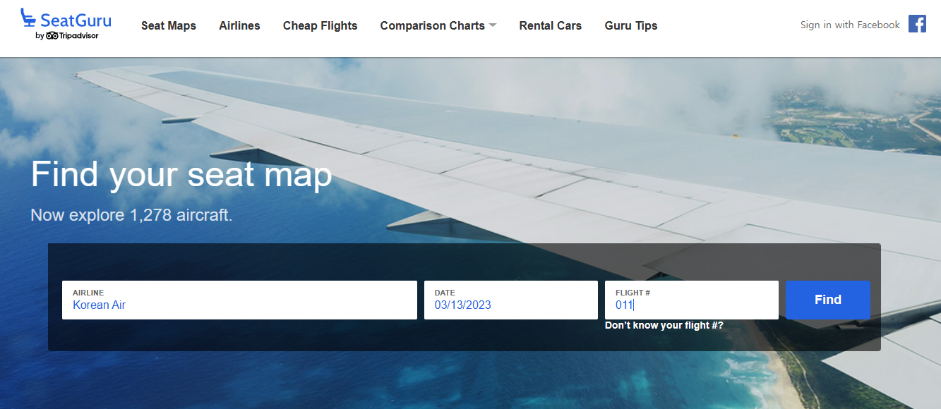 SeatGuru에 입력하고