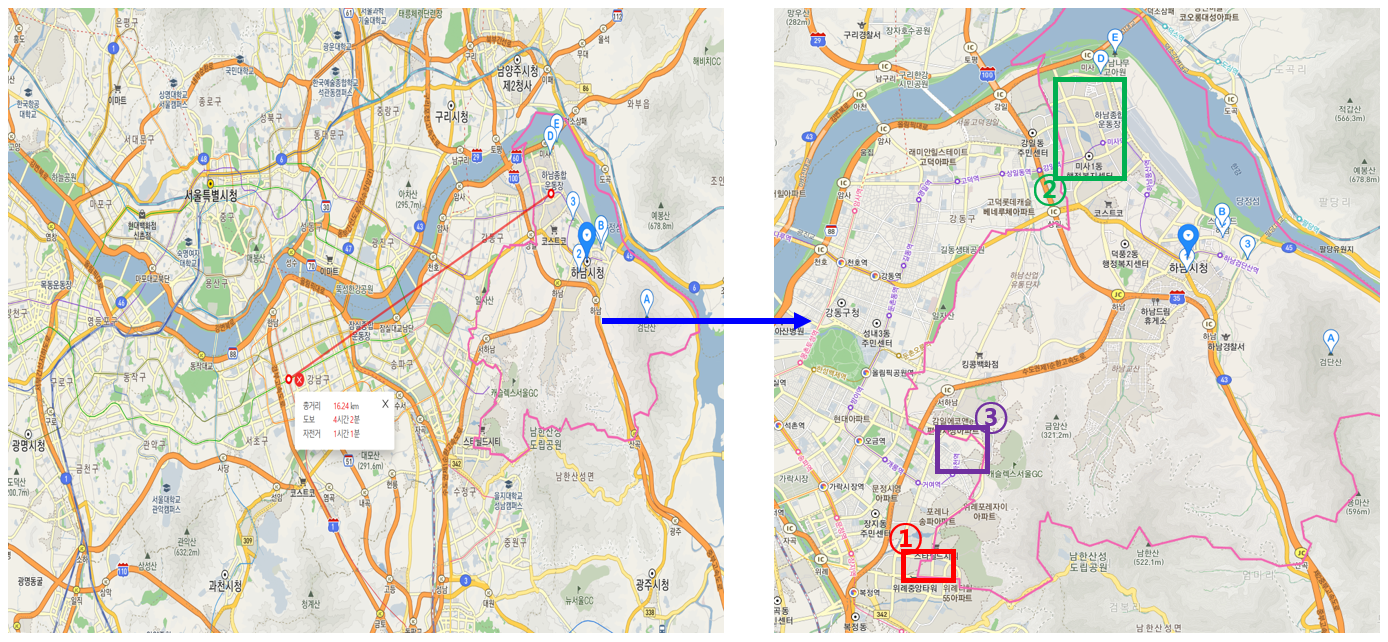 하남을 선택하여 이동한 것으로 판단됩니다.
